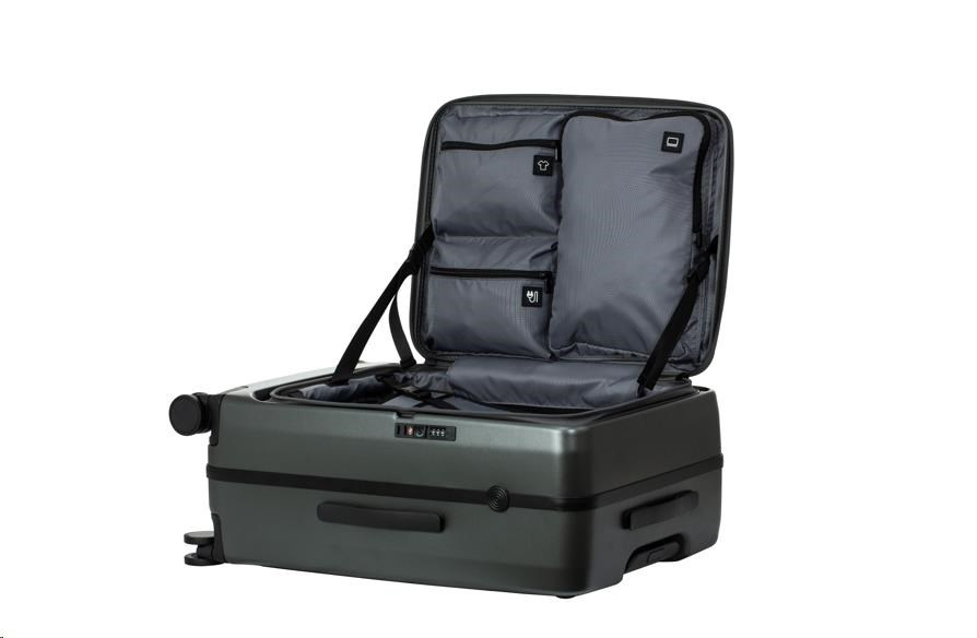 Design s předním otevíráním umožňuje snadný přístup k vašim věcem, zatímco zavazadlo stojí ve svislé poloze, což vám šetří čas a námahu. A na rozdíl od tradičních zavazadel s konstrukcí 5:5 lze zavazadlo s konstrukcí 1:9 umístit přímo ke zdi hotelu, což usnadňuje přístup a organizaci a šetří místo. Úložný prostor uprostřed kufru je rozdělen do několika sekcí pro rychlé a přehledné balení. Příště snadno najdete, co potřebujete, a vyhnete se tak nepříjemnému hledání.
