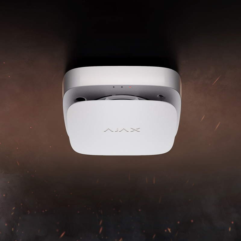 Bezdrátový kombinovaný teplotní a kouřový detektor požáru a oxidu uhelnatého vybavený vestavěnou sirénou pro signalizaci poplachu a nevyměnitelnou (vestavěnou) baterií. Může pracovat jako součást zabezpečovacího systému Ajax nebo zcela autonomně bez použití hubu.
