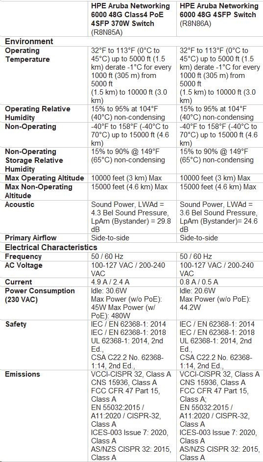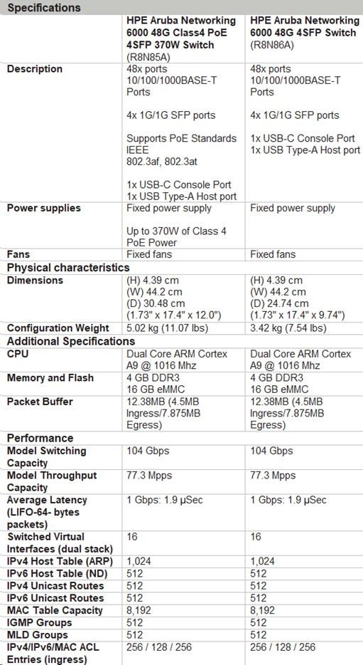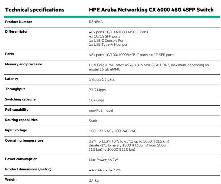 | Aruba 6000 48G 4SFP Switch (R8N86A) | |