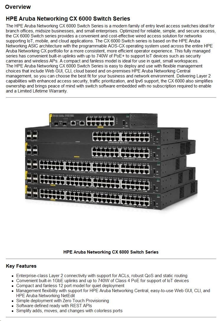 HPE Aruba Networking CX 6000 48G 4SFP Switch R8N86AR RENEW