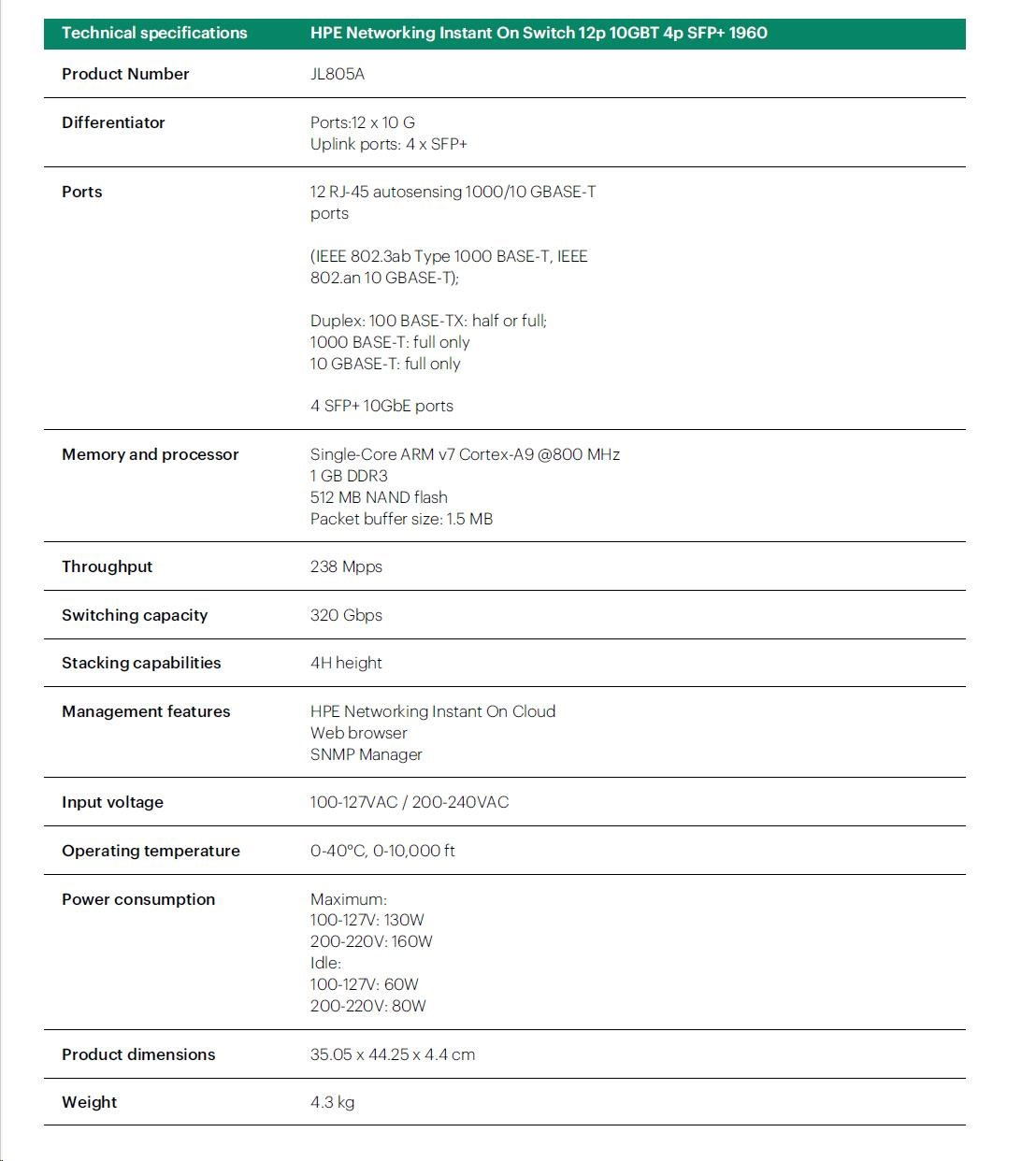 HPE Networking Instant On Switch 12p 10GBT 4p SFP+ 1960 (JL805A)
