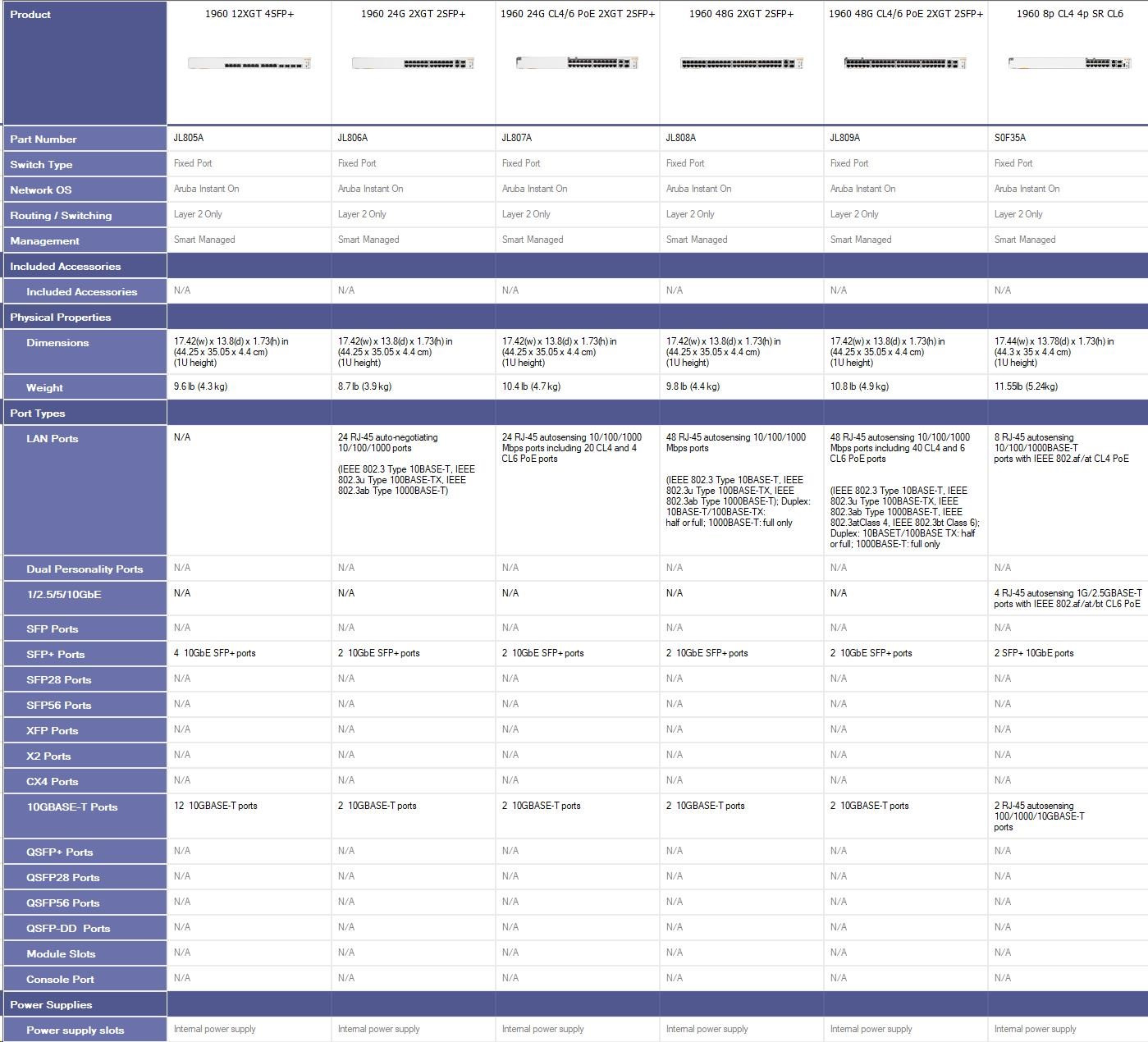 HPE Networking Instant On Switch 48p Gigabit 2p 10GBT 2p SFP+ 1960 (JL808A).