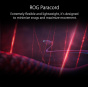 - ROG Paracord - The extremely flexible and lightweight ROG Paracord is designed to minimize snags and maximize movement. The raised port of ROG Spatha X provides space between the cable and tabletop or mousepad surface, minimizing cable drag and noise.
