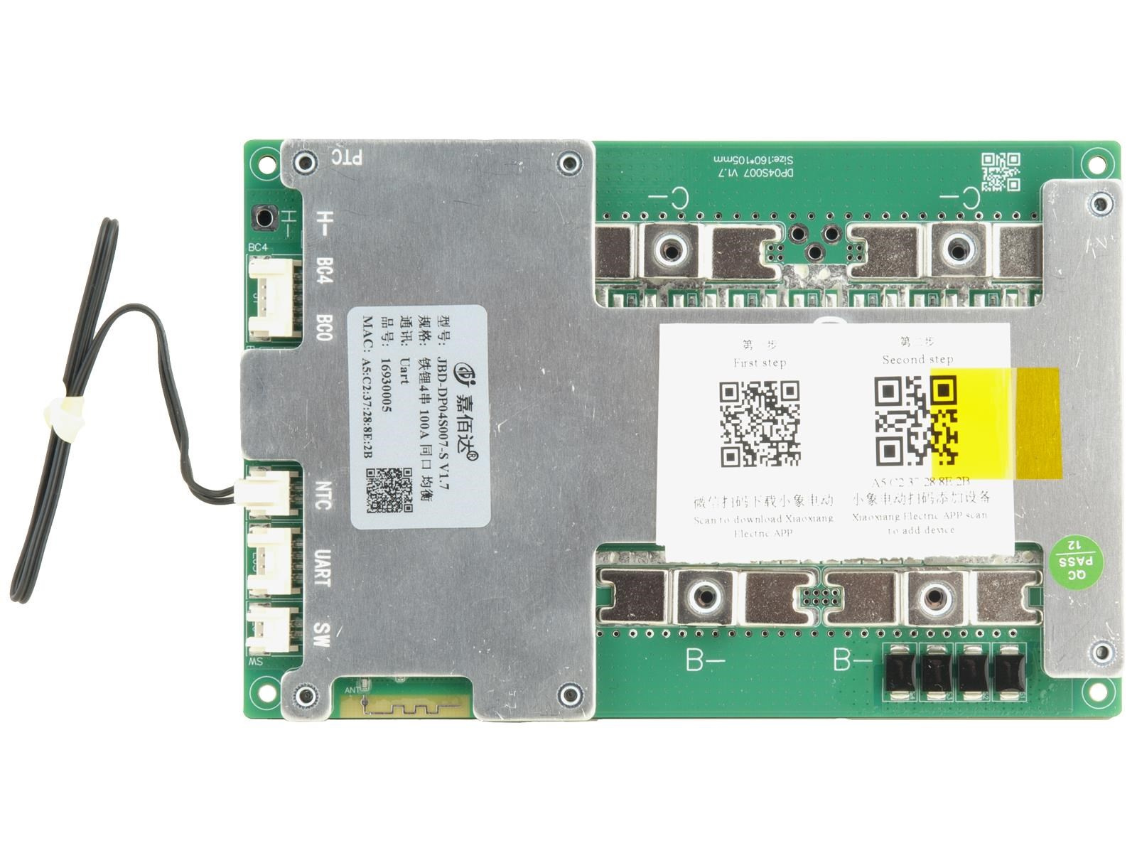 JBD Smart BMS 100A je ochranný obvod s balancérem 4 LiFePO4 články, který zajišťuje ochranu, kontrolu a správu parametrů a procesů akumulátoru.