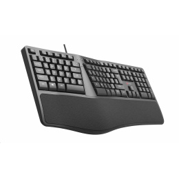Ergonomická klávesnice C-TECH KB-113E byla navržena pro ty, kteří tráví prací mnoho hodin. Svým speciálním konstrukčním řešením a měkkou předložkou Vám tato klávesnice pomůže minimalizovat Vaši únavu při dlouhé práci. Pomáhá také podobně jako vertikální myš předejít, nebo zmírnit dopady onemocnění karpálního tunelu.