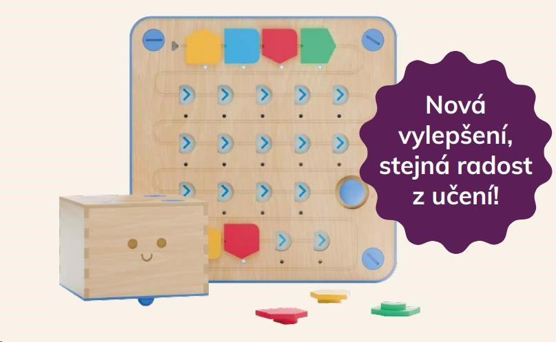 Dobíjecí baterie zároveň zvy šují udržitelnost a usnadňují pravidelné používání ve třídě i doma. Vylepšený model nabízí plynulejší učení, delší herní aktivity a více prostoru pro vlastní nápady. Děti se tak mohou přirozeně seznamovat se základy logiky a algoritmického myšlení. Cubetto+ si zároveň za chovává stejný hravý přístup k učení, díky kterému se Cubetto stalo oblíbenou pomůckou ve školkách i školách po celém světě.