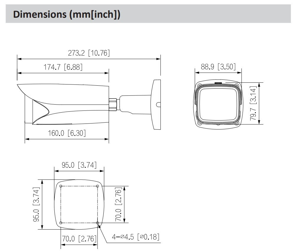 * Níže uvedené parametry a datové listy lze použít pouze pro řadu 5442-Z-S3. Obrazový snímač CMOS 1/1,8" s rozlišením 4 MP, nízkou světelností a vysokým rozlišením obrazu. Výstupy max. 4MP (2688×1520) při 25/30 snímcích za sekundu. Vestavěná infračervená dioda LED a maximální vzdálenost osvětlení je 60 m. ROI, SVC, SMART H.264+/H.265+, AI H.264/H.265, kódování po filtru, flexibilní kódování, použitelné pro různé šířky pásma a úložná prostředí. Režim otáčení, WDR, 3D NR, HLC, BLC, digitální vodoznak, použitelné pro různé monitorovací scény. S algoritmem hlubokého učení podporuje: metadata videa, inteligentní detekci zvuku, IVS, detekci obličeje, inteligentní detekci objektů a počítání osob atd. Alarm: 2 vstupy, 1 výstup; zvuk: Zvuk: 1 vstup, 1 výstup; podporuje max. 512 GB karty Micro SD, vestavěný mikrofon MIC. Napájení 12 VDC/PoE; ePoE. Krytí IP67 a IK10. SMD 3.0..