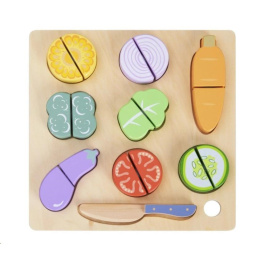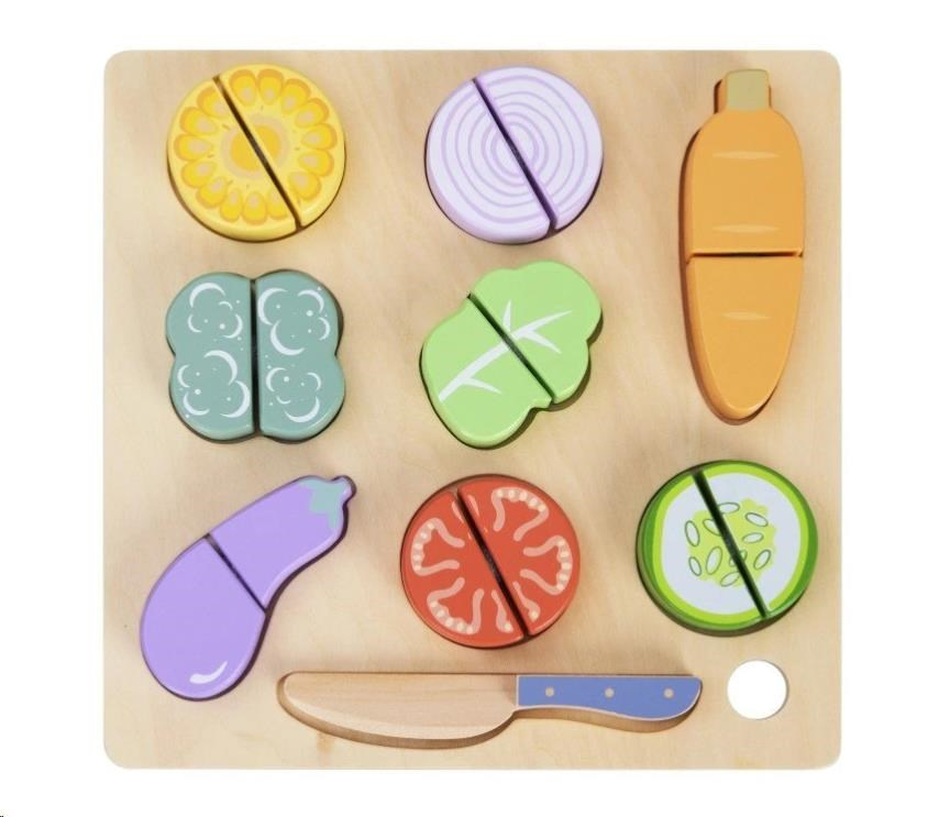 Dřevěná zelenina ke krájení je hračkou, která by neměla chybět v žádné dětské kuchyňce ani dětském obchůdku. 9 druhů zeleniny je rozděleno na poloviny spojené suchým zipem, díky kterému děti zeleninu dřevěným nožem jednoduše rozkrojí. Toto krájení zdokonalí motorické dovednosti a manuální zručnosti, děti si vyzkouší krájení bezpečným dětským způsobem. Balení obsahuje dřevěnou zeleninu, dřevěné prkénko i dřevěný nůž.