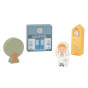 - Obsah balení: 20 dřevěných kostek (domečky, postavičky, stromy a dopravní značky).