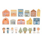 Dřevěné kostky město - domy, postavičky a další doplňky