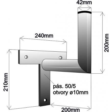 Držák antény na zeď, tvar T, žárový zinek, délka 20cm