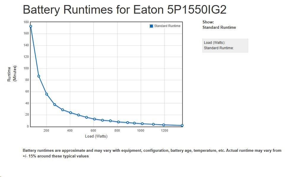 - UPS 5P může měřit energetickou spotřebu v kWh, kterou lze sledovat buď na LCD nebo pomocí softwaru Eaton Intelligent Power® Software Suite.