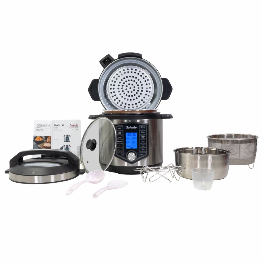 Režimy vaření se liší podle použití jednotlivých pokliček a programů. Balení multifunkčního hrnce Salente Ario II obsahuje tři poklice: horkovzdušnou troubu, poklici pro tlakové vaření a skleněnou poklici pro restování.