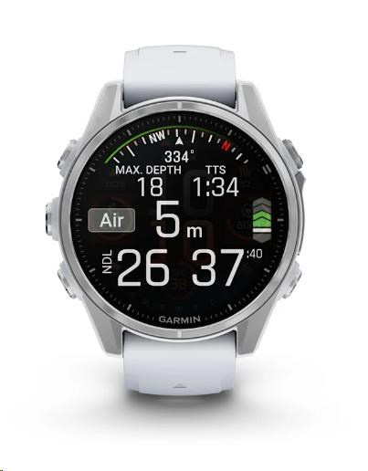 Garmin fenix® 8 – 43 mm, AMOLED, Silver / Whitestone se silikonovým řemínkem.