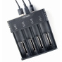 4slotová rychlé nabíjení baterie pro typy baterií: AAA / R03, AA / R6, 10440, 14500, 14650, 16340, 17500, 17670, 18350, 18500, 18650, 18700