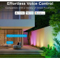 Spravujte nastavení barev a intenzity světla jednoduše pomocí aplikace Govee Home. Aplikace je zdarma ke stažení v Google Play a AppStore. Navíc získáte přístup k funkci časovače, DIY barvám, režimu videa, synchronizaci hudby a režimům scény. Rovněž si můžete pomocí časovače nastavit automatické vypnutí a zapnutí podle doby západu a východu slunce. Ovládání hlasem je možné přes Siri, Amazon Alexa a Google Assistant.
