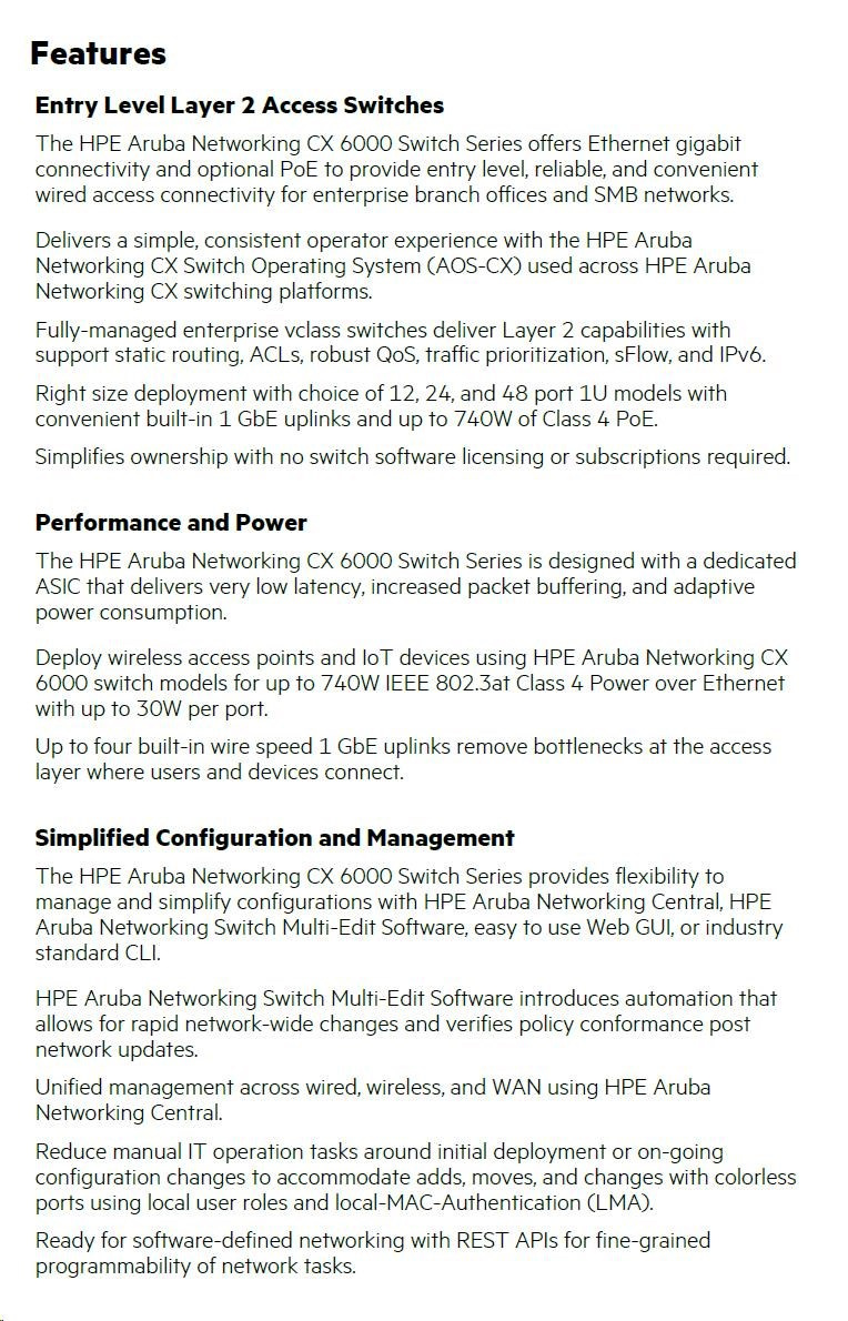 HPE Aruba CX 6000 48G PoE Switch - Specifications