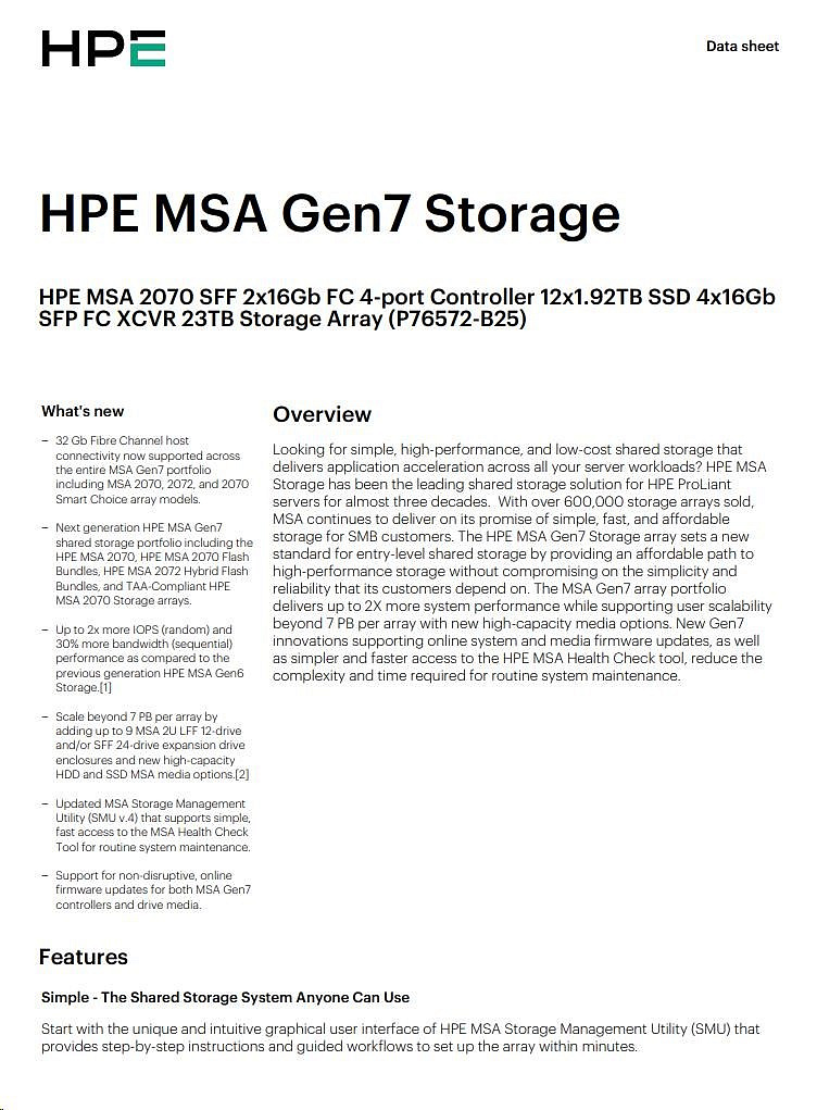 HPE MSA 2070 LFF 2x12Gb SAS 4p Array.