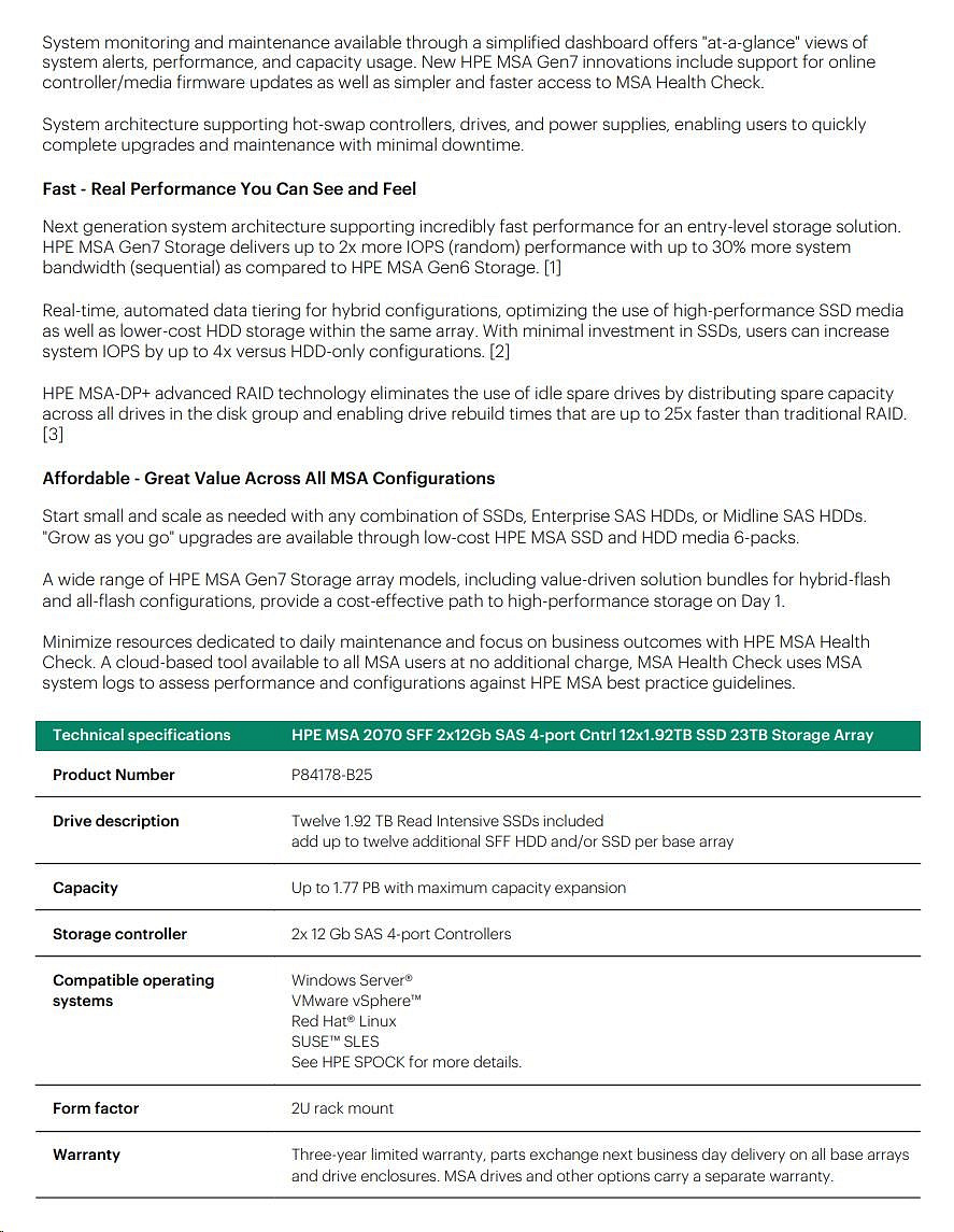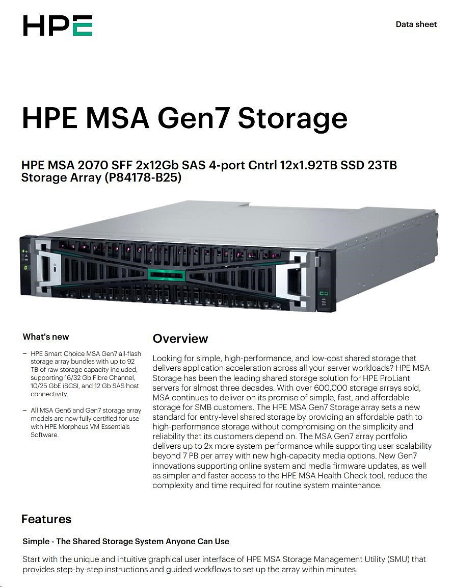 HPE MSA 2070 SFF 2x12Gb SAS 4p Array.