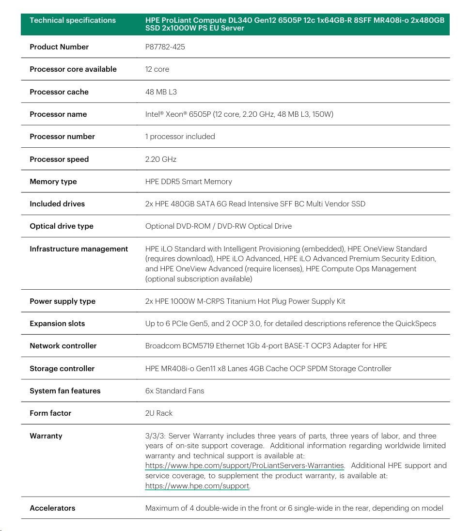 HPE PL DL320 Gen12 6505P (2.2/12C) 1x64G (P69728) 2x480G MR408i-o 8SFF 2x1000W 1GbE NBD333 Smart Choice.