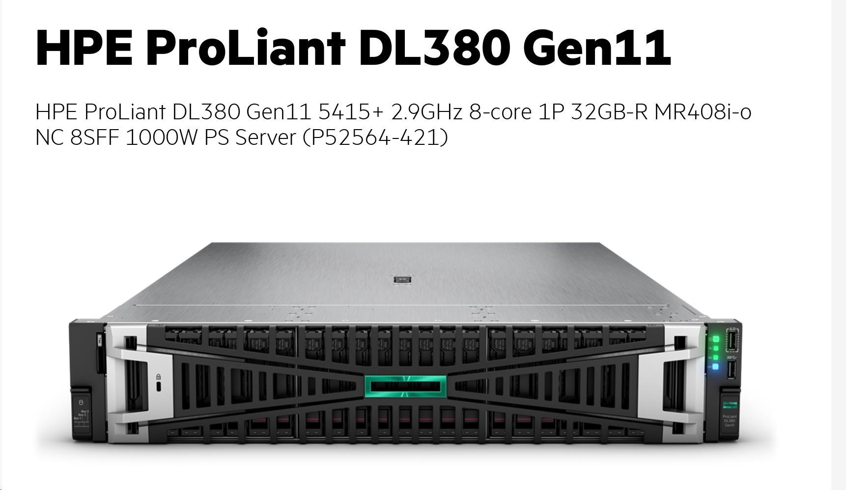 HPE PL DL380g11 5415+ (2.9/8C) 32G (P43328) MR408i-o/4G 8-26SFF 1000W 2x10G-T P52564-421 RENEW