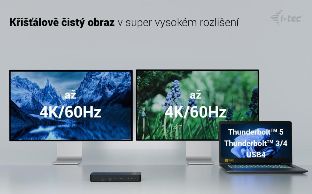 • DP + TB4 nebo 2× DP › až 2× 4K/60 Hz