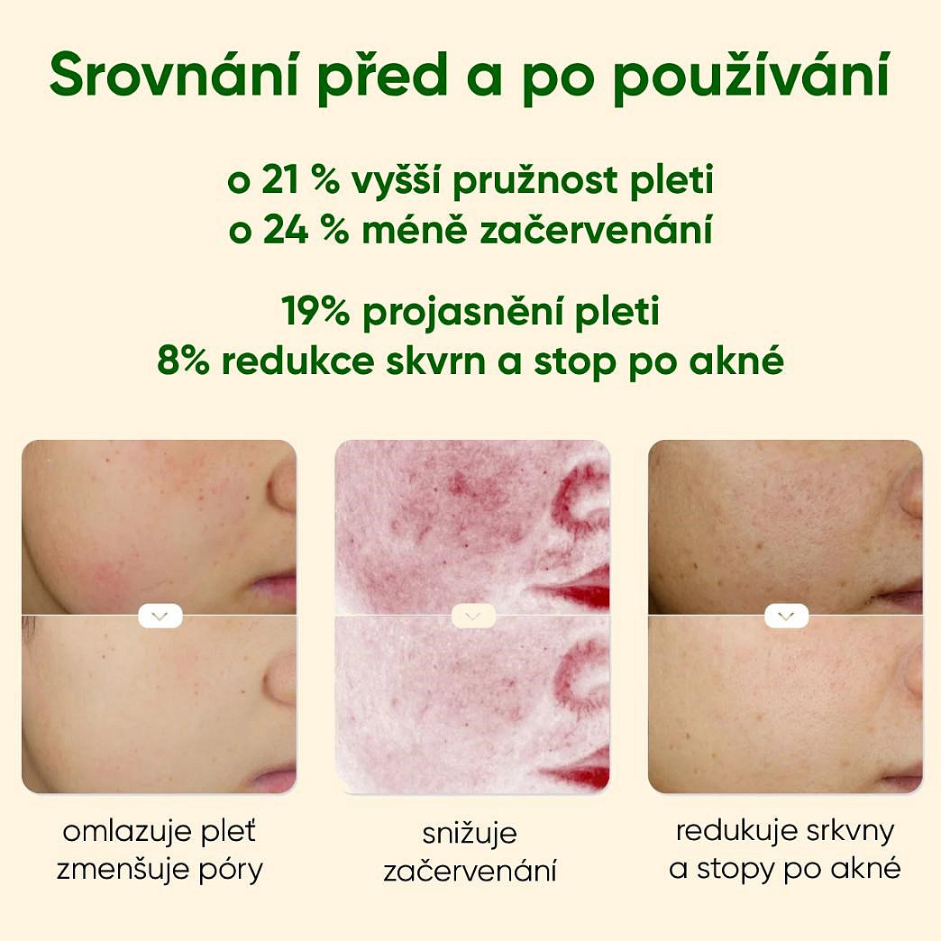 • Viditelné výsledky již za 4 týdny: Klinické testy prokazují zlepšení jasu pleti, zesvětlení skvrn a zmírnění zarudnutí.