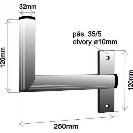 Držák antény na zeď u okna s pásem, pravé uchycení, galvanický zinek, délka 25cm, průměr 3,2cm