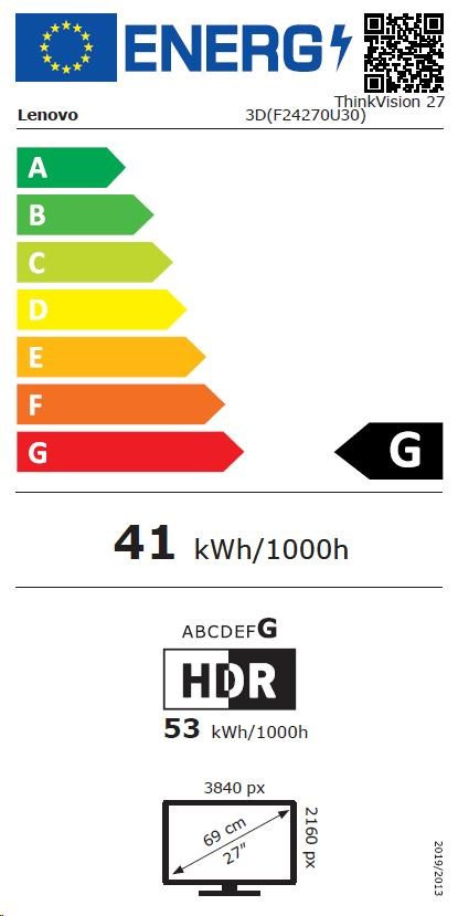 LENOVO LCD ThinkVision 27 3D - 27'',IPS,matný,16:9,3840x2160(2D),1920x2160(3D),4ms,HDMI,DP,USB-C,USB Hub,RJ45,VESA,Pivot
