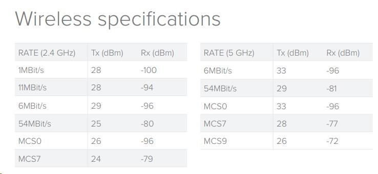 Oproti rackové verzi má tato 4 fixní všesměrové antény se ziskem 3dBi o které se starají 2 vestavěné rádiové části s modulačními rychlostmi 1733 Mbps (5GHz) a 300 Mbps (2.4GHz).