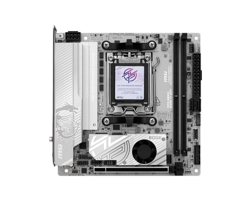 MPG B850I EDGE TI WIFI is covered with a silver-white color scheme for white PC build lovers to show off different identity. It is also powerful because of its true Wi-Fi 7 solution, 5G LAN, and the latest PCIe 5.0 compatibility, Supplemental PCIe Power, and this is the best white theme B850 ITX motherboard for AMD Ryzen™ 9000 series processors.