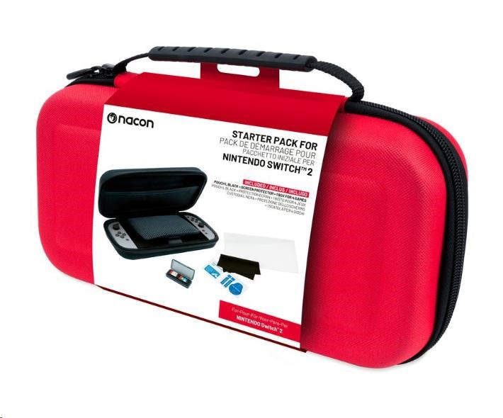 Tato sada příslušenství od společnosti Nacon určená pro herní konzoli Nintendo Switch 2 obsahuje pevné přepravní pouzdro, tvrzené ochranné sklo a praktické pouzdro pro uložení dalších herních karet.