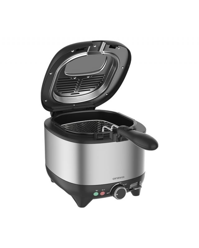 Smažené dobroty s Oravou Mladí i staří milují smažená jídla - nemohou se nabažit hranolek, smažených ryb, řízků nebo fašírky. Ani exotické pokrmy, jako jsou falafelové kuličky nebo asijské pochoutky v těstíčku tempura, si u nás již našly své věrné příznivce. Jakékoli smažené jídlo je jemné, křupavé, lákavé na zakousnutí. A že by nad nimi odborníci na výživu lomili rukama? Pokud máte k dispozici šikovný přístroj, který vám se smažením pomůže, a místo slunečnicového oleje použijete kokosový, který se nepřipaluje ani neškvaří, budou i zastánci zdravé výživy hned spokojenější. Fritéza Orava FR-111 je pro domácí smažení jako stvořená. Díky svému čtvercovému půdorysu nezabere na pracovní desce mnoho místa. Může se pochlubit příkonem 1 600 W, otočným ovládáním teploty a také praktickým mechanismem pro sklopení rukojeti fritovacího koše. Drátěný fritovací koš, horní kryt a fritovací nádobu s maximálním objemem 2,5 litru na olej a nepřilnavým, dvojitým povrchem lze po použití snadno vyjmout a důkladně umýt, aby se ve fritéze nehromadily připálené zbytky oleje. Horní kryt spotřebiče zabraňuje vystřikování oleje při smažení, ale je vybaven praktickým průzorem, abyste měli smažení neustále pod kontrolou. Velký koš a objem až 2,5 l Fritovací hrnec má objem až 2,5 litru a drátěný fritovací koš je dostatečně velký. Můžete tak najednou usmažit opravdu velkorysé porce, které nasytí celou rodinu. Do fritovacího koše se snadno vejde velký řízek, pořádná porce rybího filé nebo hromada pečených hranolků. Už žádné dlouhé čekání, než se všichni u stolu nasytí smaženého jídla. Tepelně izolovaný povrch Bezpečnost je na prvním místě. Fritovací hrnec má tepelně izolovaný povrch včetně rukojeti pro upevnění fritovacího koše, takže vám nehrozí, že se při smažení spálíte. Mezi důležité bezpečnostní prvky patří červená kontrolka, která signalizuje, že je spotřebič zapojen, a zelená kontrolka, která signalizuje, že se zvyšuje teplota spotřebiče a fritéza se zahřívá. Riziko prskání oleje je eliminováno zavíracím horním krytem spotřebiče.. Velký průzor pro smažení pod kontrolou Nemusíte otevírat horní část fritézy a riskovat, že vás zasáhne olej prskající všemi směry, abyste měli přehled o stavu smažených dobrot. Na otevíracím víku spotřebiče je velké průhledné plastové okno, přes které dobře vidíte a máte smažení pod kontrolou. Díky tomu můžete smažené potraviny vyjmout z hrnce dříve, než se stihnou připálit..