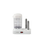 "Hotdogovač s možností přípravy vajec, Dva vertikální nástrčné trny z nerezavějící oceli pro ohřívání pečiva, Varná nádoba s nepřilnavým povrchem Nádoba na ohřev na 6 párků, Ohřívání párků v horké páře, Odnímatelný nástavec na vaření 1 až 6 vajec, Možnost vaření kukuřičného klasu, chřestu i brokolice, Tepelná pojistka, Jednoduchá obsluha a velmi snadná údržba Napájení: 220 - 240 V~, 50/60 Hz, 340 W/25W".