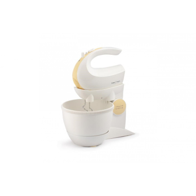 Elektrický ruční šlehač s otočnou nádobou, 5 rychlosti a funkce TURBO pro maximální výkon, 2,5 l otočná nádoba s mechanickým pohonem, Sada šlehacích metel a metel na hnětení, Výklopné rameno, Napájení: 230V~ 50Hz, 300 W.