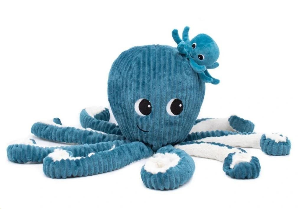 Plyšová hračka 2v1, v podobě roztomilé chobotnice s miminkem, okouzlí malé i velké děti. Úžasně heboučký plyšák je krásným dárkem k narození miminka i k jakékoliv jiné příležitosti. Plyšová chobotnice se svými 8 chapadly je připravena si s dětmi hrát, mazlit se a dělat jim společnost doma i na cestách. Pod hlavičkou chobotnice se ukrývá překvapení, malá chobotnička. Chobotnici s miminkem nabízíme ve více barevných variantách..