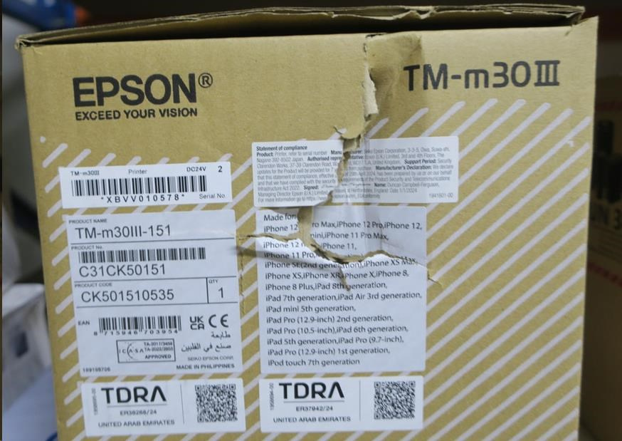 POŠKOZENÝ OBAL - Epson TM-m30III, USB, USB-C, BT, Ethernet, Wi-Fi, 8 dots/mm (203 dpi), cutter, white
