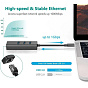 Převodník, který umožní připojit Váš počítač s portem USB typu C do internetu nebo k lokální síti pomocí kabelu s RJ45 a navíc umožňuje zapojit tři USB3.2 periferie jako USB disk, tiskárnu, klávesnici a myš