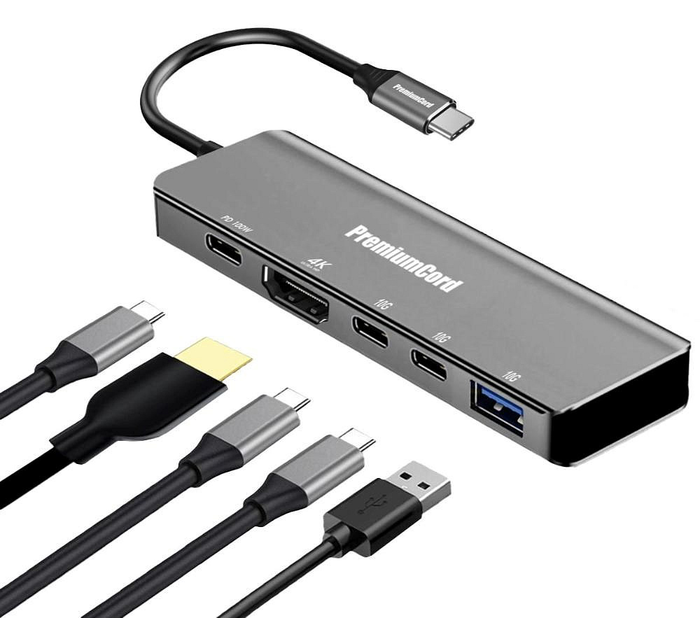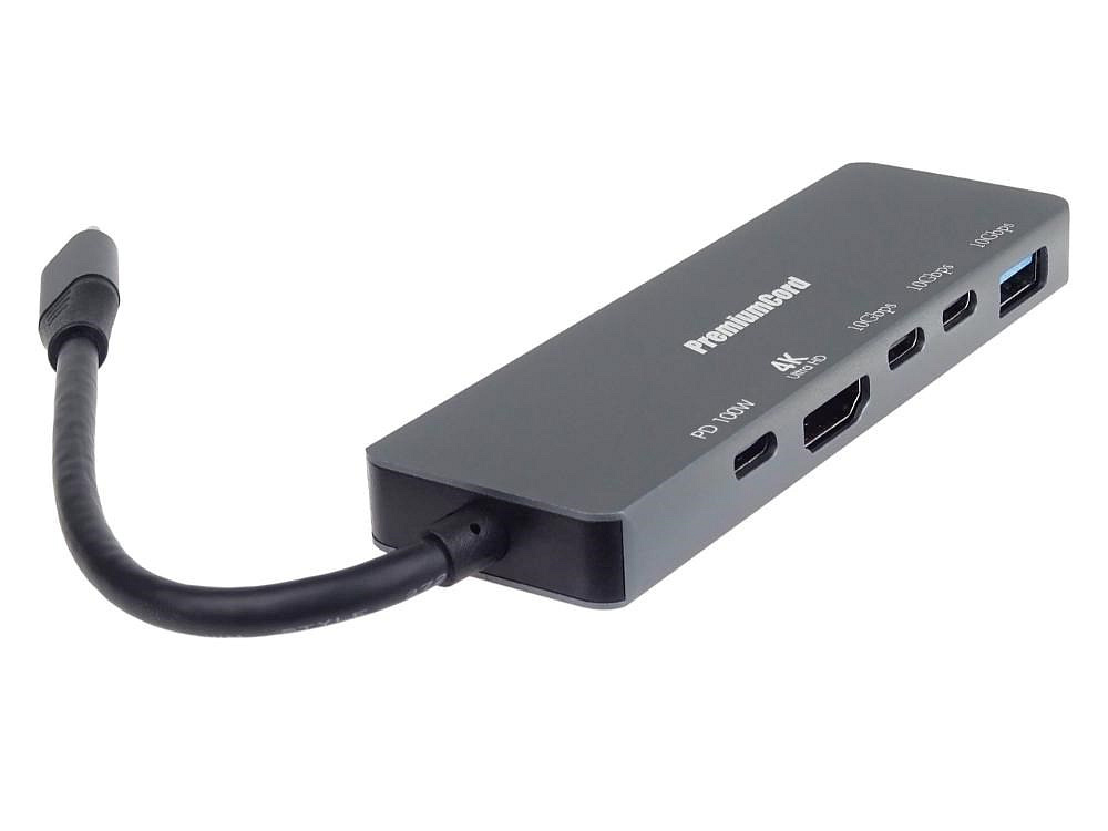 PremiumCord Adaptér USB-C na 4K@60Hz HDMI + 10G USB3.2 A + 10G 2x USB-C + PD