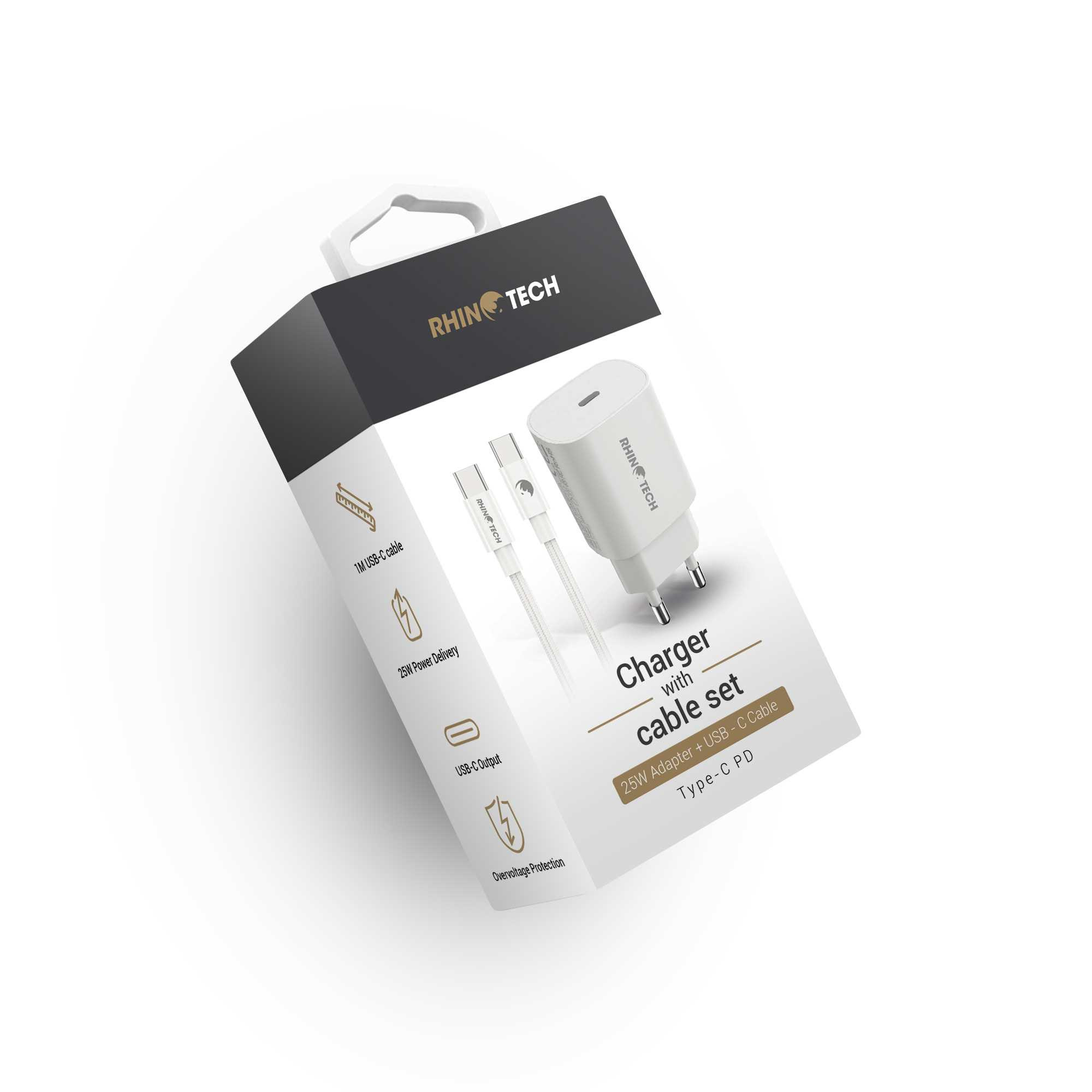 RhinoTech 25W PD nabíjecí adaptér s kabelem USB-C na USB-C 60W 1M bílá