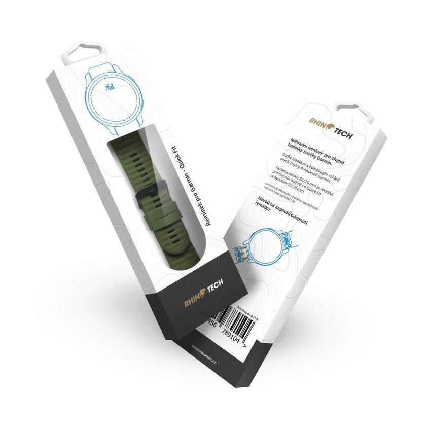 RhinoTech řemínek pro Garmin QuickFit silikonový outdoor 26mm tmavě zelený