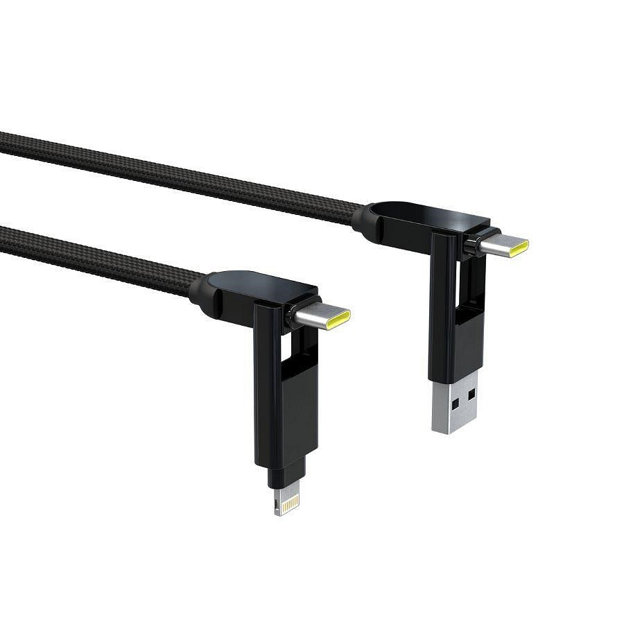 Představte si všechno chytré příslušenství, které během dne potřebujete. Telefon, iPad, chytré hodinky, bezdrátová sluchátka a dost možná i malý digitální foťák – nosit k jejich nabíjení všechny ty kabely s různými koncovkami může být noční můrou. InCharge XL od Rolling Square vás jich zbaví a stane se tím jediným, který budete potřebovat. Obsahuje celkem 5 konektorů – vstupní USB-A a USB-C a výstupní USB-C a duální Lightning s MicroUSB. Díky patentovanému designu bez nevzhledných rozdvojek můžete jednotlivé koncovky mezi sebou kombinovat a nabíjet tak téměř všechna přenosná zařízení z jakéhokoliv zdroje.Ultrarychlé nabíjení i přenos dat