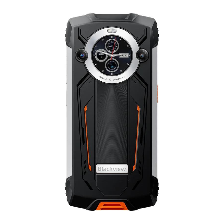 Rugged Smartphone Blackview BV8200 4G G100 12GB 256GB 8800-45W A14, Watch Display, Flashlight, Black w Orange [No Charge