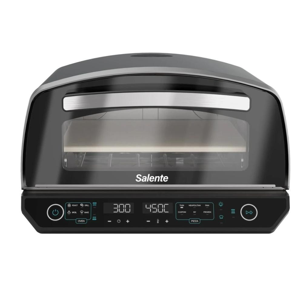 Pizza pec Salente Vulcano není jen mistr na pizzu – díky vestavěné funkci grilu ji využijete po celý rok na nespočet dalších způsobů. Nabízí režimy Broil, Roast, Bake a Grill, takže si snadno připravíte nejen dokonale propečenou pizzu, ale i šťavnaté maso, dozlatova zapečenou zeleninu, křupavé toasty nebo domácí pečivo.