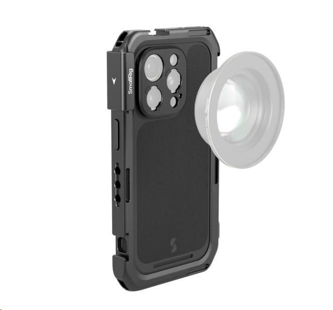 A dedicated mobile video cage for iPhone 16 Pro enables usage with protective phone cases for wide expansion options and all-around phone protection.