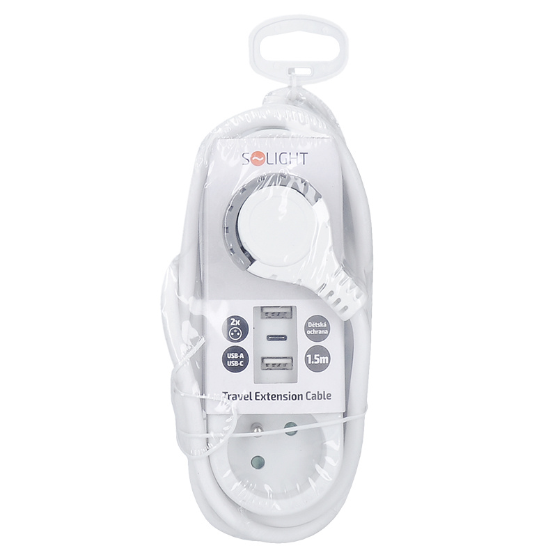Solight 2z + USB A+C 17W, cestovní prodlužovací přívod 1.5m, bílý