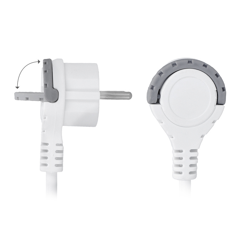 - úhlová vidlice s nízkým profilem od stěny, sklopný úchyt pro snadné vytažení ze zásuvky