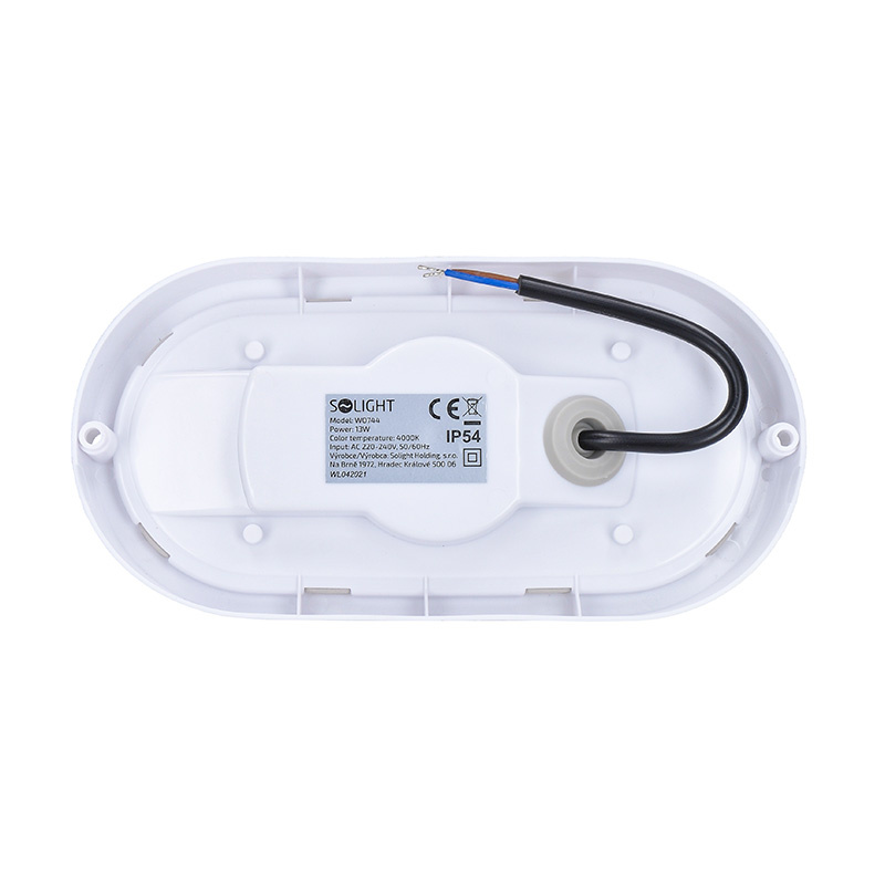 S krytím IP54 je chráněno proti stříkající vodě. Tělo z materiálu PP+PS. Rozměry: 210 x 104 x 53 mm. Barva: bílá. Napájení 220–240V AC, životnost LED 30 000 hodin. Skvělé pro chodby, zádveří nebo fasády. Energetická třída G.