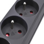 Praktický černý prodlužovací kabel s délkou 3 metry a čtyřmi zásuvkami umožní přivést elektrickou energii tam, kde není k dispozici pevná zásuvka. Ideální pro domácí i kancelářské využití.