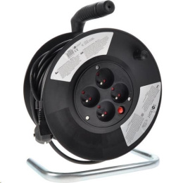 Solight prodlužovací přívod na bubnu, 4 zásuvky, 25m, černý kabel, 3x 1,5mm2